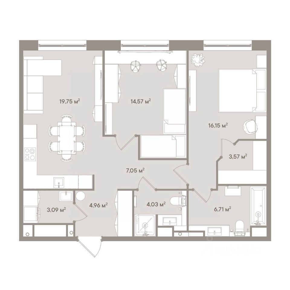 Продаются 3-комн. апартаменты, 79,88 м²