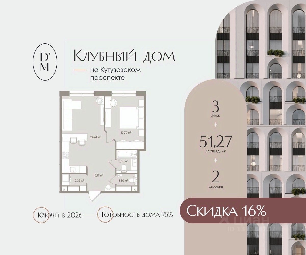 Клубный дом DORO MILLE расположен в одном из самых престижных и исторически значимых районов Москвы — Дорогомилово. Уникальная локация DORO MILLE, где гармонично сочетаются тишина, приватность и доступность ко всем важнейшим объектам столицы. Дорогомилово — это "тихий центр", предлагающий своим жителям не только спокойствие и уют, но и великолепную транспортную доступность. Клубный дом расположен всего в 7 минутах ходьбы от станции метро "Киевская", а также в непосредственной близости к Кутузовскому проспекту, одной из главных магистралей Москвы. Отсюда легко добраться до всех значимых деловых и культурных центров: в нескольких минутах езды Садовое и Бульварное кольцо, Кремль, Москва-Сити, ЦУМ и ГУМ. Комплекс расположен в глубине Дорогомиловских улиц, вдали от городского шума и суеты. Здесь царит атмосфера старомосковской аристократичности, где соседствуют исторические здания и современные комплексы. Каждый элемент в DORO MILLE продуман до мелочей: от элегантного фасада, состоящего из 343 арок, до просторных лотов с выверенной эргономикой и безупречного сервиса. Архитектура вдохновлена итальянским неоимпериализмом и испанским неомодернизмом, придавая зданию неповторимую легкость и изящество. Всего 150 апартаментов и 6 пентхаусов предлагают широкий выбор планировочных решений, включая студии, варианты с одной-четырьмя спальнями, каминами и верандами. Каждый лот спроектирован так, чтобы увеличить эффективное пространство и обеспечить максимальный комфорт для резидентов: окна в ванных комнатах, несколько гардеробных и просторные гостиные-столовые. Жители DORO MILLE смогут наслаждаться не только исключительными условиями проживания, но и полной приватностью. Закрытый двор-сад без машин, выполненный по проекту архитектурного бюро Wowhaus, превратится в собственный зеленый оазис в центре Москвы с функциональными зонами для отдыха и спорта. Проект был высоко оценен профессиональным сообществом, завоевав множество наград, включая премию Move Realty Awards за лучшие архитектурные решения и премию Urban Awards за создание нового формата недвижимости. Клубный дом DORO MILLE — это истинное воплощение мечты о городской жизни в окружении искусства, уюта и изящной архитектуры.