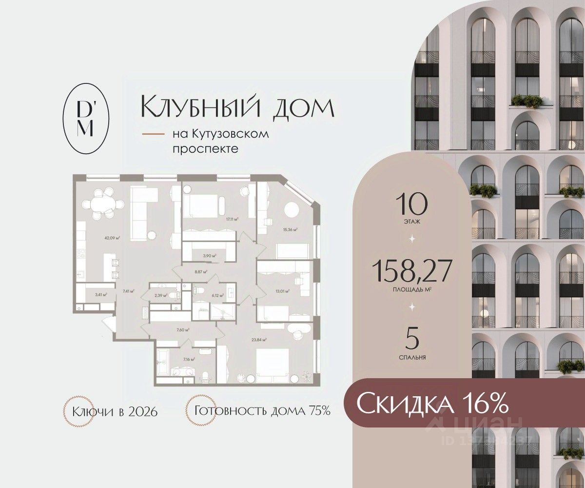 Клубный дом DORO MILLE расположен в одном из самых престижных и исторически значимых районов Москвы — Дорогомилово. Уникальная локация DORO MILLE, где гармонично сочетаются тишина, приватность и доступность ко всем важнейшим объектам столицы. Дорогомилово — это "тихий центр", предлагающий своим жителям не только спокойствие и уют, но и великолепную транспортную доступность. Клубный дом расположен всего в 7 минутах ходьбы от станции метро "Киевская", а также в непосредственной близости к Кутузовскому проспекту, одной из главных магистралей Москвы. Отсюда легко добраться до всех значимых деловых и культурных центров: в нескольких минутах езды Садовое и Бульварное кольцо, Кремль, Москва-Сити, ЦУМ и ГУМ. Комплекс расположен в глубине Дорогомиловских улиц, вдали от городского шума и суеты. Здесь царит атмосфера старомосковской аристократичности, где соседствуют исторические здания и современные комплексы. Каждый элемент в DORO MILLE продуман до мелочей: от элегантного фасада, состоящего из 343 арок, до просторных лотов с выверенной эргономикой и безупречного сервиса. Архитектура вдохновлена итальянским неоимпериализмом и испанским неомодернизмом, придавая зданию неповторимую легкость и изящество. Всего 150 апартаментов и 6 пентхаусов предлагают широкий выбор планировочных решений, включая студии, варианты с одной-четырьмя спальнями, каминами и верандами. Каждый лот спроектирован так, чтобы увеличить эффективное пространство и обеспечить максимальный комфорт для резидентов: окна в ванных комнатах, несколько гардеробных и просторные гостиные-столовые. Жители DORO MILLE смогут наслаждаться не только исключительными условиями проживания, но и полной приватностью. Закрытый двор-сад без машин, выполненный по проекту архитектурного бюро Wowhaus, превратится в собственный зеленый оазис в центре Москвы с функциональными зонами для отдыха и спорта. Проект был высоко оценен профессиональным сообществом, завоевав множество наград, включая премию Move Realty Awards за лучшие архитектурные решения и премию Urban Awards за создание нового формата недвижимости. Клубный дом DORO MILLE — это истинное воплощение мечты о городской жизни в окружении искусства, уюта и изящной архитектуры.