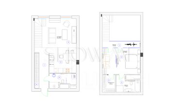 1 уровень - кухня-гостиная (высота потолка 5,2 метра), гостевой санузел, системы хранения.
