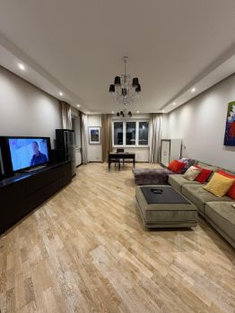 С агентами, агентствами не работаю, не тратьте свое время и мое! В Жк Северная Корона в лучшем районе Ходынское поле продается 3-х комнатная (122,6 метра) видовая квартира на последнем 23 этаже, что является большим преимуществом (на техническом этаже над квартирой сделана профессиональная гидроизоляция), квартира с панорамным видом на Москву с удобным подземным паркингом (можем продать дополнительно, есть удобное паркинг место у лифта). Квартира очень тихая, угловая, соседи только за 1й стеной, в квартире сделана шумоизоляция по полу и стенам. В пешей доступности метро ЦСКА (5 минут), Мегаспорт и ТРЦ Авиапарк. Квартира оснащена всем необходимым для комфортного проживания: Гардеробная, 2 санузла (в одном душевая кабина, в другом ванна и душевая кабина), 2 спальни, кухня отдельная и просторная гостиная с шикарным панорамным видом на Москву. Сплит система (кондиционер в каждой комнате), система очистки воздуха в спальне! На кухне, в коридоре и в санузлах тёплый пол. В квартире большая лоджия с панорамным видом, доступ из кухни и детской. В прихожей отличная вместительная гардеробная. 2 санузла: в одном из них ванна, в другом душевая кабина. В вестибюле есть шкаф для хранения вещей (велосипеды, вещи не первой необходимости). Красивая входная группа, ухоженный подьезд с консьержем, ремонт на этаже. Огороженная территория с видеонаблюдением и охраной, облагороженный зеленый двор, детская и спортивная площадки. Школа и сад во дворе. Район с развитой инфраструктурой: парки, много спортивных школ и секций, прогулочные зоны! Свободная продажа, 1 взрослый собственник.