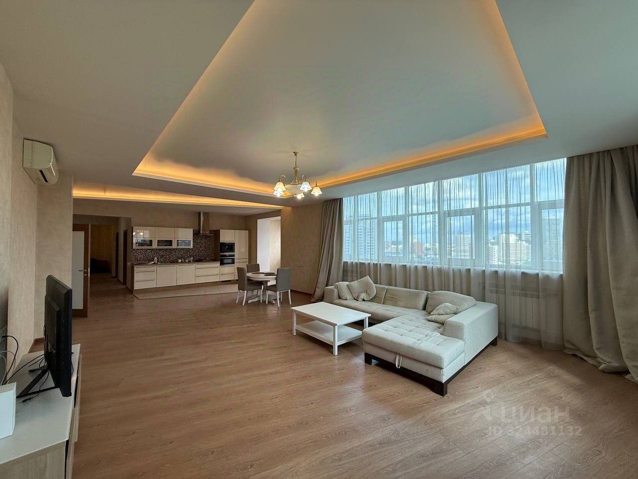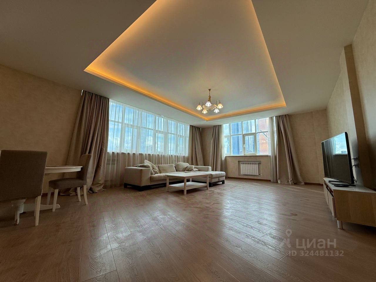Общая площадь 144,7 кв.м, жилая 104 кв.м (включая кухню-гостиную), комнаты 15.9 и 23 кв.м, два санузла, лоджия