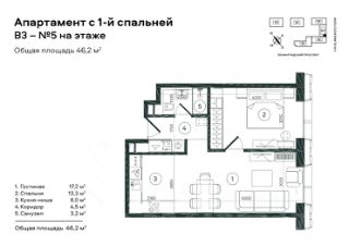 Предлагается к продаже от собственника апартамент "евродвушка" общей площадью 46,4м2 в жилом комплексе премиум-класса Slava (корпус 1, секция А3) по адресу: 1-я улица Ямского Поля, 1к1.