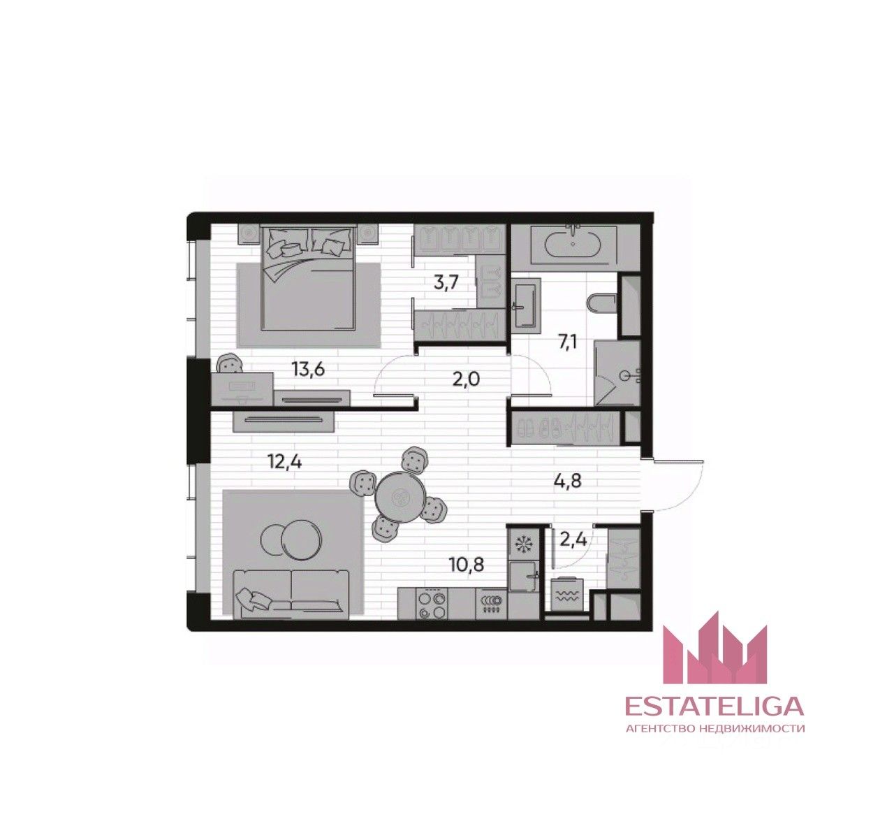 Id 58708. Продается просторная 2-комнатная квартира в современном жилом комплексе PRIDE