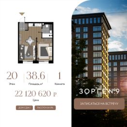 "Зорге 9" — готовые апартаменты бизнес-класса на Ходынке. 10 минут до Москва-Сити. Архитектура: 3 современных корпуса с фасадами в стиле архитектуры Нью-Йорка и с сервисами премиальных отелей, высотой до 23 этажа. Строгие линии, панорамные окна создают ощущение неподдельной роскоши и комфортной жизни в сердце мегаполиса. Проект награжден авторитетной премией European Property Awards. Резиденции: Свободная планировка, небольшая глубина этажа, огромные панорамные окна в пол до 3,6 м и высота потолков до от 3,3 до 4,3 м позволяют реализовать самые смелые концептуальные идеи и создать идеальный интерьер с учетом всех пожеланий. Вдохновляющие виды на город украсят ваш апартамент лучше любой картины. Есть возможность приобретения дизайн-проекта и полной меблировки апартаментов от партнеров девелопера. Расположение: 3 мин. пешком до парка Березовая роща 10 мин. пешком до Ходынского поля 10 мин. до ТЦ Авиапарк 30 минут до Шереметьево 10 мин до Москва-Сити или 1 станция до Москва-Сити 5 минут до ТТК 4 станции метро в шаговой доступности: 6 мин м. Полежаевская (фиолетовая ветка) 7 мин МЦК Зорге (МЦК) 7 мин м. Хорошевская (голубая ветка) 10 мин МЦК Хорошёво (МЦК) Благоустройство: Собственный парк 2 га с амфитеатром и поющими фонтанами. В парке высажено 136 деревьев и более 11 000 кустов и мелких растений из немецких питомников. Площадка для йоги и воркаут-зона со спортивными площадками. Теннисные столы и детский плейхаб Две башни Авторское гранд-лобби В лобби предусмотрена лаундж-зона, чайная с камином, комната для хранения велосипедов и колясок. Доступ по системе FACE ID. В отделке лобби и лифтовых холлов использован декоративный камень итальянского бренда Atlas Concorde Пентхаусы На верхнем уровне комплекса расположены роскошные просторные пентхаусы с высотой потолка до 4,2 метра и панорамными окнами до 3,6 метров, открывающими великолепные виды на столицу. Пентхаусы с выходами на собственные приватные террасы на кровле, площадью от 150 кв. м являются жильем high-уровня, демонстрирующим высокий статус владельца.