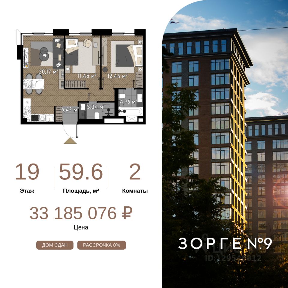 "Зорге 9" — готовые апартаменты бизнес-класса на Ходынке. 10 минут до Москва-Сити. Архитектура: 3 современных корпуса с фасадами в стиле архитектуры Нью-Йорка и с сервисами премиальных отелей, высотой до 23 этажа. Строгие линии, панорамные окна создают ощущение неподдельной роскоши и комфортной жизни в сердце мегаполиса. Проект награжден авторитетной премией European Property Awards. Резиденции: Свободная планировка, небольшая глубина этажа, огромные панорамные окна в пол до 3,6 м и высота потолков до от 3,3 до 4,3 м позволяют реализовать самые смелые концептуальные идеи и создать идеальный интерьер с учетом всех пожеланий. Вдохновляющие виды на город украсят ваш апартамент лучше любой картины. Есть возможность приобретения дизайн-проекта и полной меблировки апартаментов от партнеров девелопера. Расположение: 3 мин. пешком до парка Березовая роща 10 мин. пешком до Ходынского поля 10 мин. до ТЦ Авиапарк 30 минут до Шереметьево 10 мин до Москва-Сити или 1 станция до Москва-Сити 5 минут до ТТК 4 станции метро в шаговой доступности: 6 мин м. Полежаевская (фиолетовая ветка) 7 мин МЦК Зорге (МЦК) 7 мин м. Хорошевская (голубая ветка) 10 мин МЦК Хорошёво (МЦК) Благоустройство: Собственный парк 2 га с амфитеатром и поющими фонтанами. В парке высажено 136 деревьев и более 11 000 кустов и мелких растений из немецких питомников. Площадка для йоги и воркаут-зона со спортивными площадками. Теннисные столы и детский плейхаб Две башни Авторское гранд-лобби В лобби предусмотрена лаундж-зона, чайная с камином, комната для хранения велосипедов и колясок. Доступ по системе FACE ID. В отделке лобби и лифтовых холлов использован декоративный камень итальянского бренда Atlas Concorde Пентхаусы На верхнем уровне комплекса расположены роскошные просторные пентхаусы с высотой потолка до 4,2 метра и панорамными окнами до 3,6 метров, открывающими великолепные виды на столицу. Пентхаусы с выходами на собственные приватные террасы на кровле, площадью от 150 кв. м являются жильем high-уровня, демонстрирующим высокий статус владельца.