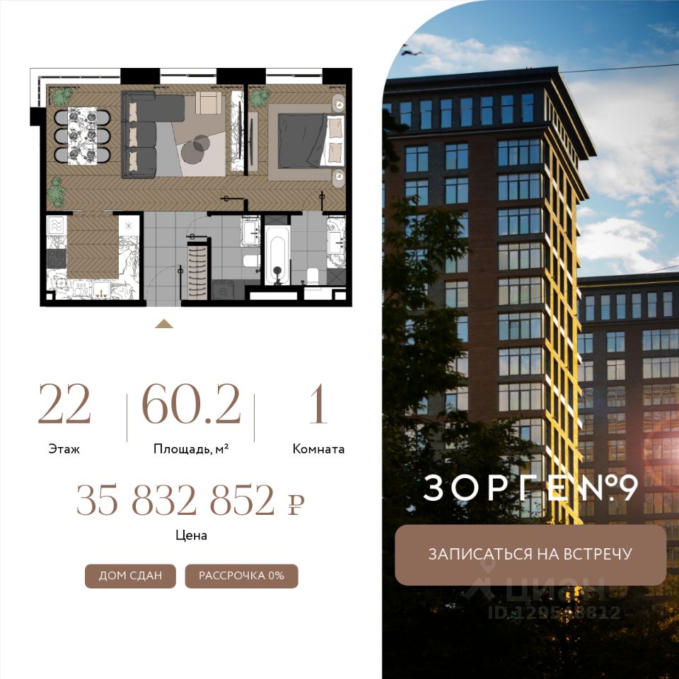 "Зорге 9" — готовые апартаменты бизнес-класса на Ходынке. 10 минут до Москва-Сити. Архитектура: 3 современных корпуса с фасадами в стиле архитектуры Нью-Йорка и с сервисами премиальных отелей, высотой до 23 этажа. Строгие линии, панорамные окна создают ощущение неподдельной роскоши и комфортной жизни в сердце мегаполиса. Проект награжден авторитетной премией European Property Awards. Резиденции: Свободная планировка, небольшая глубина этажа, огромные панорамные окна в пол до 3,6 м и высота потолков до от 3,3 до 4,3 м позволяют реализовать самые смелые концептуальные идеи и создать идеальный интерьер с учетом всех пожеланий. Вдохновляющие виды на город украсят ваш апартамент лучше любой картины. Есть возможность приобретения дизайн-проекта и полной меблировки апартаментов от партнеров девелопера. Расположение: 3 мин. пешком до парка Березовая роща 10 мин. пешком до Ходынского поля 10 мин. до ТЦ Авиапарк 30 минут до Шереметьево 10 мин до Москва-Сити или 1 станция до Москва-Сити 5 минут до ТТК 4 станции метро в шаговой доступности: 6 мин м. Полежаевская (фиолетовая ветка) 7 мин МЦК Зорге (МЦК) 7 мин м. Хорошевская (голубая ветка) 10 мин МЦК Хорошёво (МЦК) Благоустройство: Собственный парк 2 га с амфитеатром и поющими фонтанами. В парке высажено 136 деревьев и более 11 000 кустов и мелких растений из немецких питомников. Площадка для йоги и воркаут-зона со спортивными площадками. Теннисные столы и детский плейхаб Две башни Авторское гранд-лобби В лобби предусмотрена лаундж-зона, чайная с камином, комната для хранения велосипедов и колясок. Доступ по системе FACE ID. В отделке лобби и лифтовых холлов использован декоративный камень итальянского бренда Atlas Concorde Пентхаусы На верхнем уровне комплекса расположены роскошные просторные пентхаусы с высотой потолка до 4,2 метра и панорамными окнами до 3,6 метров, открывающими великолепные виды на столицу. Пентхаусы с выходами на собственные приватные террасы на кровле, площадью от 150 кв. м являются жильем high-уровня, демонстрирующим высокий статус владельца.