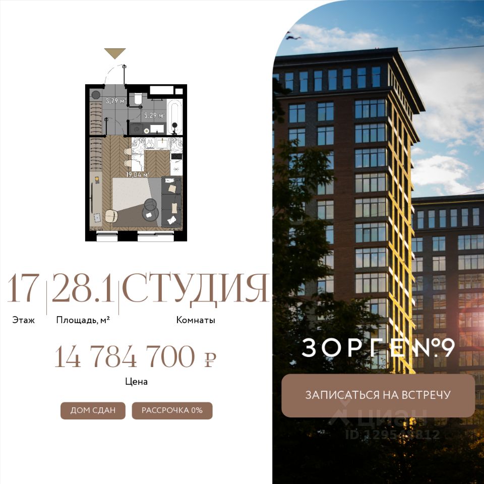 "Зорге 9" — готовые апартаменты бизнес-класса на Ходынке. 10 минут до Москва-Сити. Архитектура: 3 современных корпуса с фасадами в стиле архитектуры Нью-Йорка и с сервисами премиальных отелей, высотой до 23 этажа. Строгие линии, панорамные окна создают ощущение неподдельной роскоши и комфортной жизни в сердце мегаполиса. Проект награжден авторитетной премией European Property Awards. Резиденции: Свободная планировка, небольшая глубина этажа, огромные панорамные окна в пол до 3,6 м и высота потолков до от 3,3 до 4,3 м позволяют реализовать самые смелые концептуальные идеи и создать идеальный интерьер с учетом всех пожеланий. Вдохновляющие виды на город украсят ваш апартамент лучше любой картины. Есть возможность приобретения дизайн-проекта и полной меблировки апартаментов от партнеров девелопера. Расположение: 3 мин. пешком до парка Березовая роща 10 мин. пешком до Ходынского поля 10 мин. до ТЦ Авиапарк 30 минут до Шереметьево 10 мин до Москва-Сити или 1 станция до Москва-Сити 5 минут до ТТК 4 станции метро в шаговой доступности: 6 мин м. Полежаевская (фиолетовая ветка) 7 мин МЦК Зорге (МЦК) 7 мин м. Хорошевская (голубая ветка) 10 мин МЦК Хорошёво (МЦК) Благоустройство: Собственный парк 2 га с амфитеатром и поющими фонтанами. В парке высажено 136 деревьев и более 11 000 кустов и мелких растений из немецких питомников. Площадка для йоги и воркаут-зона со спортивными площадками. Теннисные столы и детский плейхаб Две башни Авторское гранд-лобби В лобби предусмотрена лаундж-зона, чайная с камином, комната для хранения велосипедов и колясок. Доступ по системе FACE ID. В отделке лобби и лифтовых холлов использован декоративный камень итальянского бренда Atlas Concorde Пентхаусы На верхнем уровне комплекса расположены роскошные просторные пентхаусы с высотой потолка до 4,2 метра и панорамными окнами до 3,6 метров, открывающими великолепные виды на столицу. Пентхаусы с выходами на собственные приватные террасы на кровле, площадью от 150 кв. м являются жильем high-уровня, демонстрирующим высокий статус владельца.