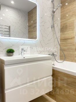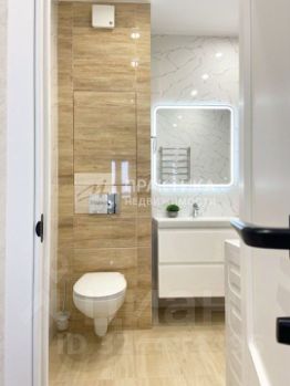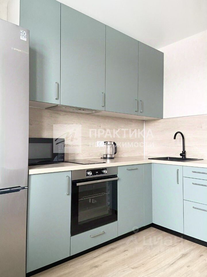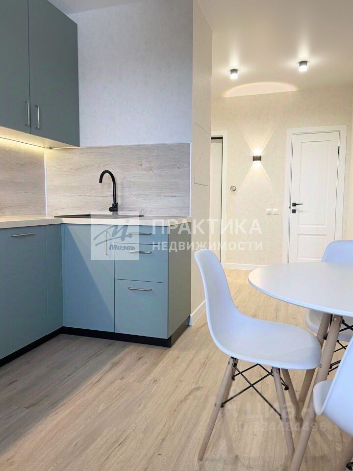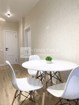 Кухня с балконом, совмещенный санузел. Стильная плитка в санузле и на балконе, полы в комнате, кухне, гардеробной и коридоре уложены единым контуром кварц-винилом. На стенах обои, потолки натяжные. Есть возможность установить раскладывающийся диван на кухне, что позволит сделать евро-двухкомнатную квартиру.
