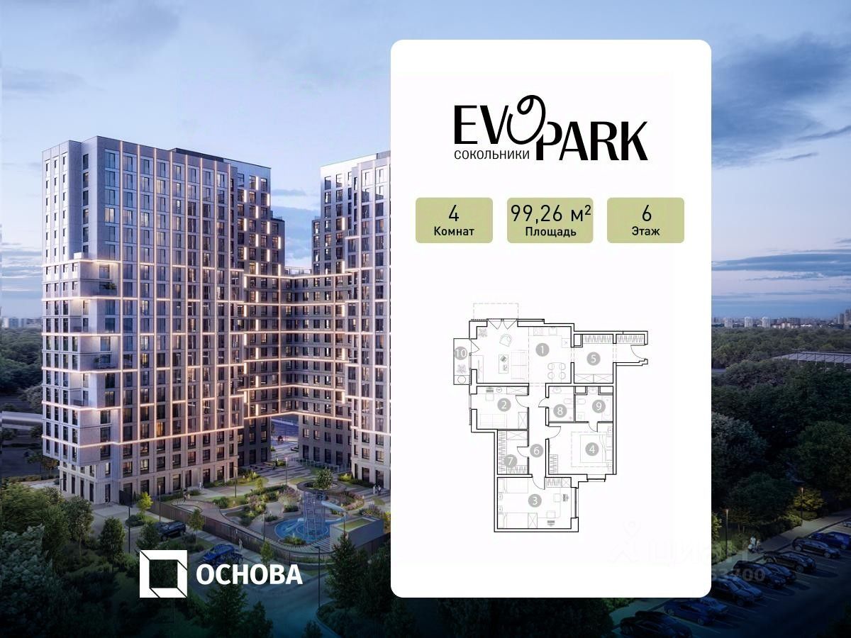 Продаются 4-к апартаменты площадью 99.26 кв.м. на 6-м этаже 20 этажного дома в EVOPARK Сокольники от ГК ОСНОВА.