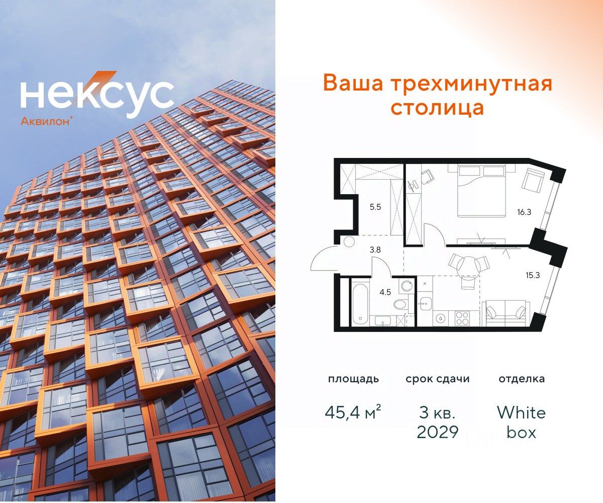 Продажа от застройщика. О проекте: В основе Несус Аквилон лежит принцип трехминутного города, где вся жизнь: работа, отдых, здоровье, общение и культура сосредоточены в шаговой доступности. Он не просто экономит время, а кардинально перераспределяет его. В этих условиях главным логистическим узлом становится лифт, который в считанные секунды переносит из квартиры в собственный фитнес-рум, панорамный двор или современный коворкинг. Здесь вы сами решаете: оказаться в эпицентре событий, чувствуя пульс мегаполиса, или наслаждаться тишиной и приватностью своего пространства. И главное — вы можете переключаться, находя идеальный баланс каждый день. Несус Аквилон - ваша трехминутная столица! Транспортная доступность Несус Аквилон дарит независимость от расстояний и логистики. Ваше время теперь принадлежит только вам меньше минуты до метро Молодежная 2 минуты до Рублевского шоссе 10 минут до Проспекта Багратиона 15 минут до Москва-Сити 10 минут до МКАД 20 минут до ТТК Архитектура 46-этажная башня станет новой архитектурной доминантой, символизирующей динамику и технологичность современной жизни.Комбинация алюминиевых кассет, стеклофибробетона и витражного остекления фасада создает монументальную оболочку, а теплая цветовая гамма добавляет масштабной форме визуальной теплоты. Три разных по характеру стороны башни — от строгой "зубчатой" геометрии до живописных эркеров — создают многогранный, ритмичный образ, дополняемый невесомыми балконами со стеклянным ограждением. Архитектура проекта живет в диалоге с городом: променад вдоль парящего стилобата со стрит-ретейлом становится естественным продолжением общественного пространства. Планировки в концепции Разумные метры Мы создали квартиры, где пространство работает на ваш комфорт. В основе концепции "Разумные метры" правильная геометрия помещений и тщательно продуманные эргономичные решения. - Высота потолков до 3,55 метров - Многообразие планировок: от студий до четырехкомнатных квартир классического и евро-формата - Многофункциональные пространства: кухни-гостиные для приема гостей и зонированные мастер-спальни - Продуманная инфраструктура быта: отдельные постирочные и гостевые санузлы - Удобные системы хранения: встроенные ниши и гардеробные зоны - Уникальные форматы: пентхаусы, комнаты с двумя окнами, угловое панорамное остекление - Возможность открытия окон на всех высотах Для студий и однокомнатных квартир мы предлагаем готовое решение — отделку White box, позволяющую сразу приступить к чистовому ремонту на ваш вкус. Для остальных планировок предусмотрена черновая отделка, чтобы воплотить все интерьерные пожелания. Здесь пространство адаптируется под ваш образ жизни, а не вы подстраиваетесь под планировку. Приватное благоустройство Скрытый на виду панорамный двор-терраса, расположенный на высоте 7 метров, объединил внутреннюю камерность и внешнюю динамику городской жизни. - Многоуровневое озеленение с всесезонными композициями, сохраняющими декоратив
