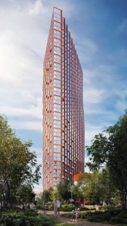 46-этажная башня станет новой архитектурной доминантой, символизирующей динамику и технологичность современной жизни.Комбинация алюминиевых кассет, стеклофибробетона и витражного остекления фасада создает монументальную оболочку, а теплая цветовая гамма добавляет масштабной форме визуальной теплоты.