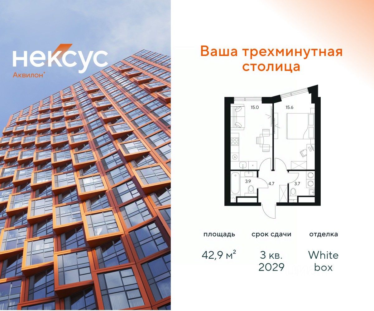 Продажа от застройщика. О проекте: В основе Несус Аквилон лежит принцип трехминутного города, где вся жизнь: работа, отдых, здоровье, общение и культура сосредоточены в шаговой доступности. Он не просто экономит время, а кардинально перераспределяет его. В этих условиях главным логистическим узлом становится лифт, который в считанные секунды переносит из квартиры в собственный фитнес-рум, панорамный двор или современный коворкинг. Здесь вы сами решаете: оказаться в эпицентре событий, чувствуя пульс мегаполиса, или наслаждаться тишиной и приватностью своего пространства. И главное — вы можете переключаться, находя идеальный баланс каждый день. Несус Аквилон - ваша трехминутная столица! Транспортная доступность Несус Аквилон дарит независимость от расстояний и логистики. Ваше время теперь принадлежит только вам меньше минуты до метро Молодежная 2 минуты до Рублевского шоссе 10 минут до Проспекта Багратиона 15 минут до Москва-Сити 10 минут до МКАД 20 минут до ТТК Архитектура 46-этажная башня станет новой архитектурной доминантой, символизирующей динамику и технологичность современной жизни.Комбинация алюминиевых кассет, стеклофибробетона и витражного остекления фасада создает монументальную оболочку, а теплая цветовая гамма добавляет масштабной форме визуальной теплоты. Три разных по характеру стороны башни — от строгой "зубчатой" геометрии до живописных эркеров — создают многогранный, ритмичный образ, дополняемый невесомыми балконами со стеклянным ограждением. Архитектура проекта живет в диалоге с городом: променад вдоль парящего стилобата со стрит-ретейлом становится естественным продолжением общественного пространства. Планировки в концепции Разумные метры Мы создали квартиры, где пространство работает на ваш комфорт. В основе концепции "Разумные метры" правильная геометрия помещений и тщательно продуманные эргономичные решения. - Высота потолков до 3,55 метров - Многообразие планировок: от студий до четырехкомнатных квартир классического и евро-формата - Многофункциональные пространства: кухни-гостиные для приема гостей и зонированные мастер-спальни - Продуманная инфраструктура быта: отдельные постирочные и гостевые санузлы - Удобные системы хранения: встроенные ниши и гардеробные зоны - Уникальные форматы: пентхаусы, комнаты с двумя окнами, угловое панорамное остекление - Возможность открытия окон на всех высотах Для студий и однокомнатных квартир мы предлагаем готовое решение — отделку White box, позволяющую сразу приступить к чистовому ремонту на ваш вкус. Для остальных планировок предусмотрена черновая отделка, чтобы воплотить все интерьерные пожелания. Здесь пространство адаптируется под ваш образ жизни, а не вы подстраиваетесь под планировку. Приватное благоустройство Скрытый на виду панорамный двор-терраса, расположенный на высоте 7 метров, объединил внутреннюю камерность и внешнюю динамику городской жизни. - Многоуровневое озеленение с всесезонными композициями, сохраняющими декоратив
