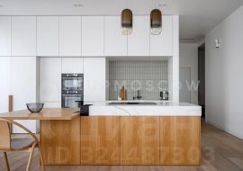 В интерьере использованы только натуральные дорогие материалы, бытовая техника премиум класса, мебель изготовлена по индивидуальному заказу.