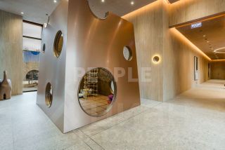 Общее Дизайнерское лобби с охраной на 2 башни, где расположена зона ресепшн, охрана. В лобби есть детская зона, зона ожидания, колясочная, зона ухода за животными. На крыше стилобата расположена еще одна общая зона отдыха для жильцов. Во дворе есть воркаут зона, игровая площадка с горками и песочницей.