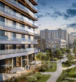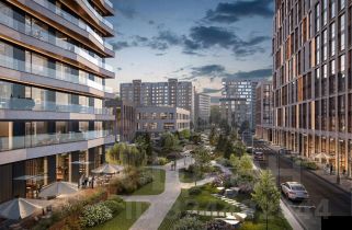 Территория комплекса делится на несколько отдельных частей: открытый просторный бульвар 3500 м для прогулок и два внутренних камерных двора. Внутри них предусмотрены площадки для спорта, места для игр и тихие пространства для отдыха и неторопливого общения, а также образовательный центр со школой на 257 учеников и детским садом на 112 мест.