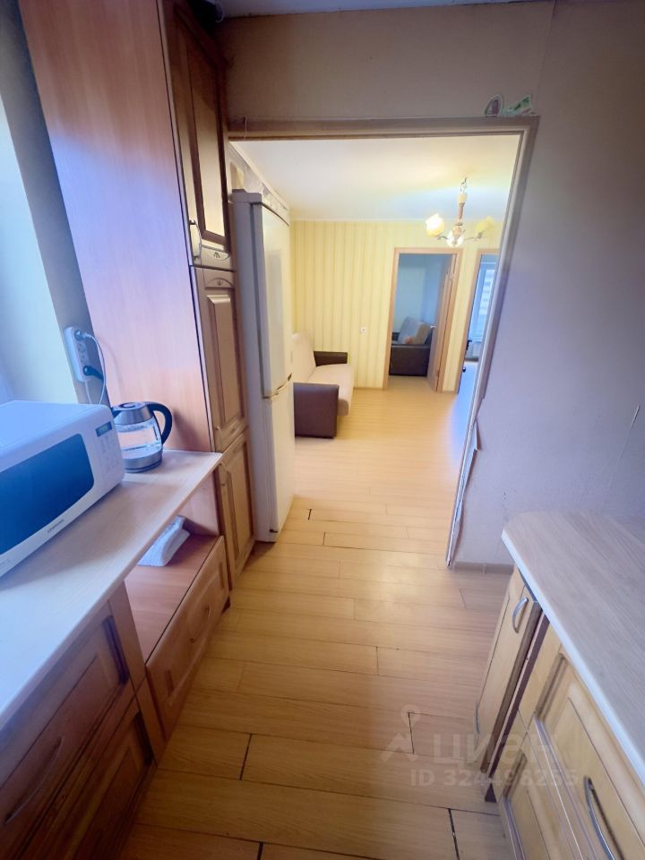 В квартире выполнен косметический ремонт, меблирована. Планировка: 2 изолированные небольшие спальни, большая проходная гостиная с отдельной гардеробной и балконом, кухня 5 кв.м. , раздельный с/у, коридор. Квартира расположена на 9 этаже 9-ти этажного дома, сверху расположен дополнительно технический этаж.