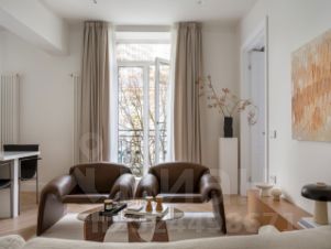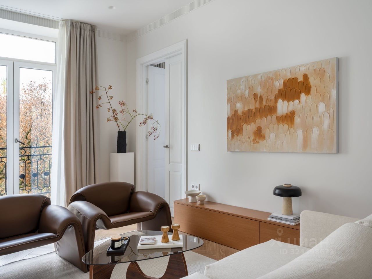 Окна квартиры выходят в тихий зеленый двор, с балкона открывается потрясающий вид на Москва-Сити.