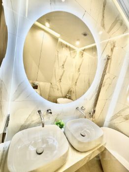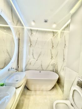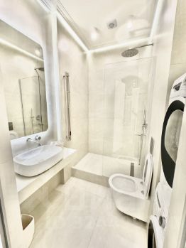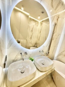 В квартире сделан качественный евроремонт. Просторная кухня площадью 24 кв. м позволяет с комфортом принимать гостей. В квартире есть два санузла: один совмещенный и один отдельный, что очень удобно для большой семьи.