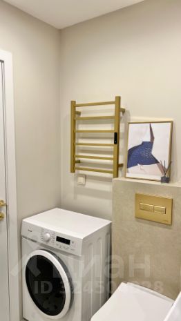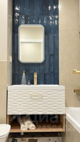 * В ванной комнате установлен тёплый пол, зеркало с подсветкой, полотенцесушитель с таймером работы и регулировкой величины подогрева, стиральная машина;