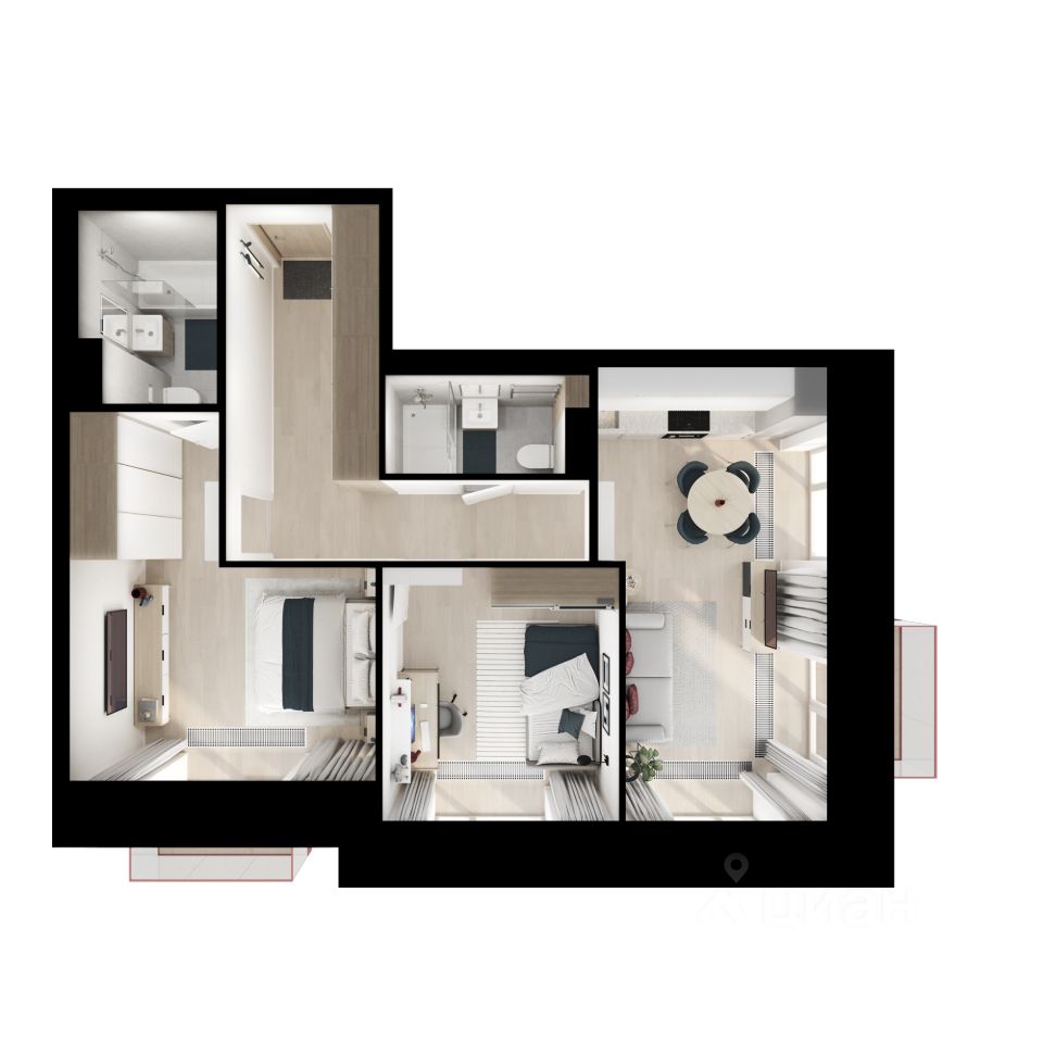 Благодаря продуманности архитектуры, в квартирах есть панорамные окна в пол, открытые, французские, угловые балконы и террасы.
