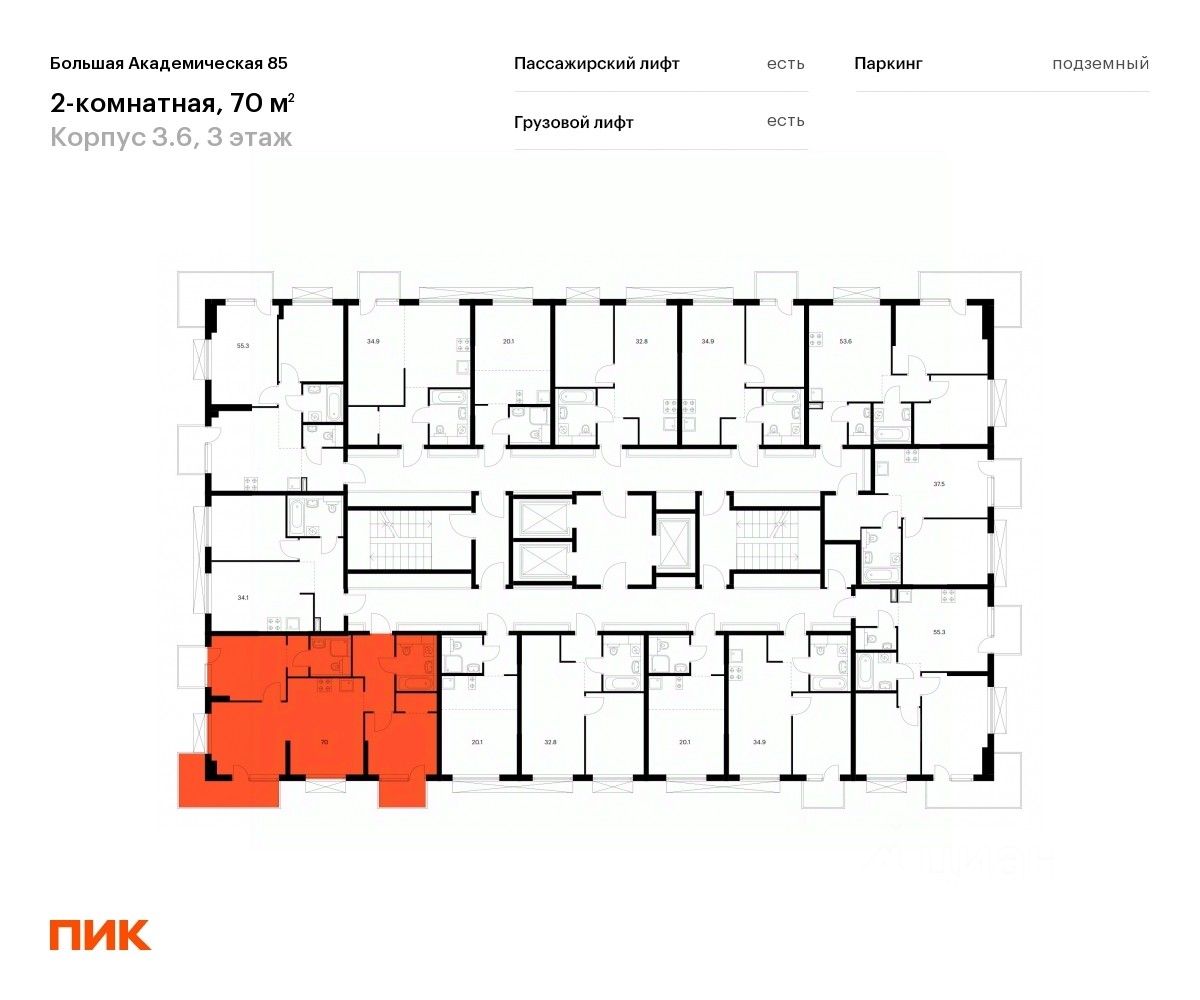 Продаётся 2-комн. апартаменты площадью 70 кв.м на 3 этаже 24 этажного дома (Корпус 3.6, Секция 2) проекта ПИК Большая Академическая 85. Светлый просторный подъезд на уровне земли, функциональная планировка, большие окна, c отделкой.