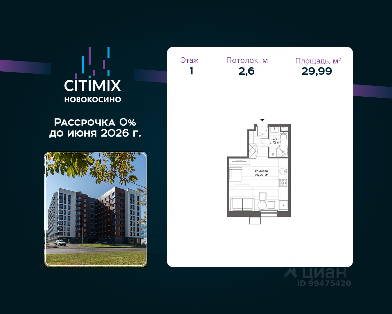 МФК "CITIMIX Новокосино" находится в 15 минутах пешком от м. Новокосино, время поездки до центра Москвы займёт всего 30 минут.