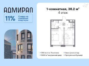 В динамично развивающемся районе Москвы, всего в 300 метрах от метро и в пешей близости от нового городского порта с протяженной набережной 13 км, свободной от автомобилей, продается 1-комнатная квартира площадью 38.20 м². без отделки. Квартира находится в корпусе жилого комплекса бизнес-класса "Адмирал", расположенного по адресу г. Москва, ул. Шоссейная, 4Д. (Застройщик - "Галс Девелопмент"). Новый амбициозный проект "Адмирал" станет частью одного из самых перспективных районов будущего - "Сити-2". В пешей доступности от современных башен Вас ждут живописные Люблинские пруды, 2 усадьбы с уникальной историей и уютный парк "Печатники" у Перервинского плёса. Район имеет отличную транспортную доступность: • 300 метров до станции метро "Печатники"; • Удобная пересадка на БКЛ и станцию МЦД-2; • 10 минут на машине до ТТК; • 15 минут до Садового кольца. Архитектура корпусов отличается динамичностью облика благодаря переменной этажности: высокие башни сочетаются с домами средней этажности. Изящным украшением становятся арочные витражи. Интеллигентный и современный стиль "Адмирала" продолжается в гранд-лобби: пастельные оттенки интерьера и фактурные элементы декора создают атмосферу безмятежного отдыха, особое ощущение простора дарят высокие потолки до 4 м и витражные окна. В домах предусмотрено от трех до шести скоростных лифтов, каждый из них спускается на любой этаж подземного паркинга и обладает удобными сенсорными панелями управления и низким уровнем шума. Благоустроенный двор площадью 5000 кв.м. украсят десятки видов гипоаллергенных растений. Здесь можно совершить приятный променад, по пути заглядывая за свежезаваренным кофе, уединиться за ноутбуком в комфортном коворкинге, занять ребенка играми в двухъярусном плейхабе или помедитировать на специальной площадке для йоги. Мягкий свет декоративных фонарей подчеркнет живописность местности, а чувство безопасности гарантируют круглосуточные системы видеонаблюдения. Дополнительные преимущества: • Высокие потолки от 2,9 до 3,25 м; • Бизнес-центр, школа и детский сад прямо на территории дома; • Подземный двухуровневый паркинг на 1955 машино-мест; • Кладовые помещения в тёплом контуре на 2м этаже; • Стрит-ритейл на первых этажах.