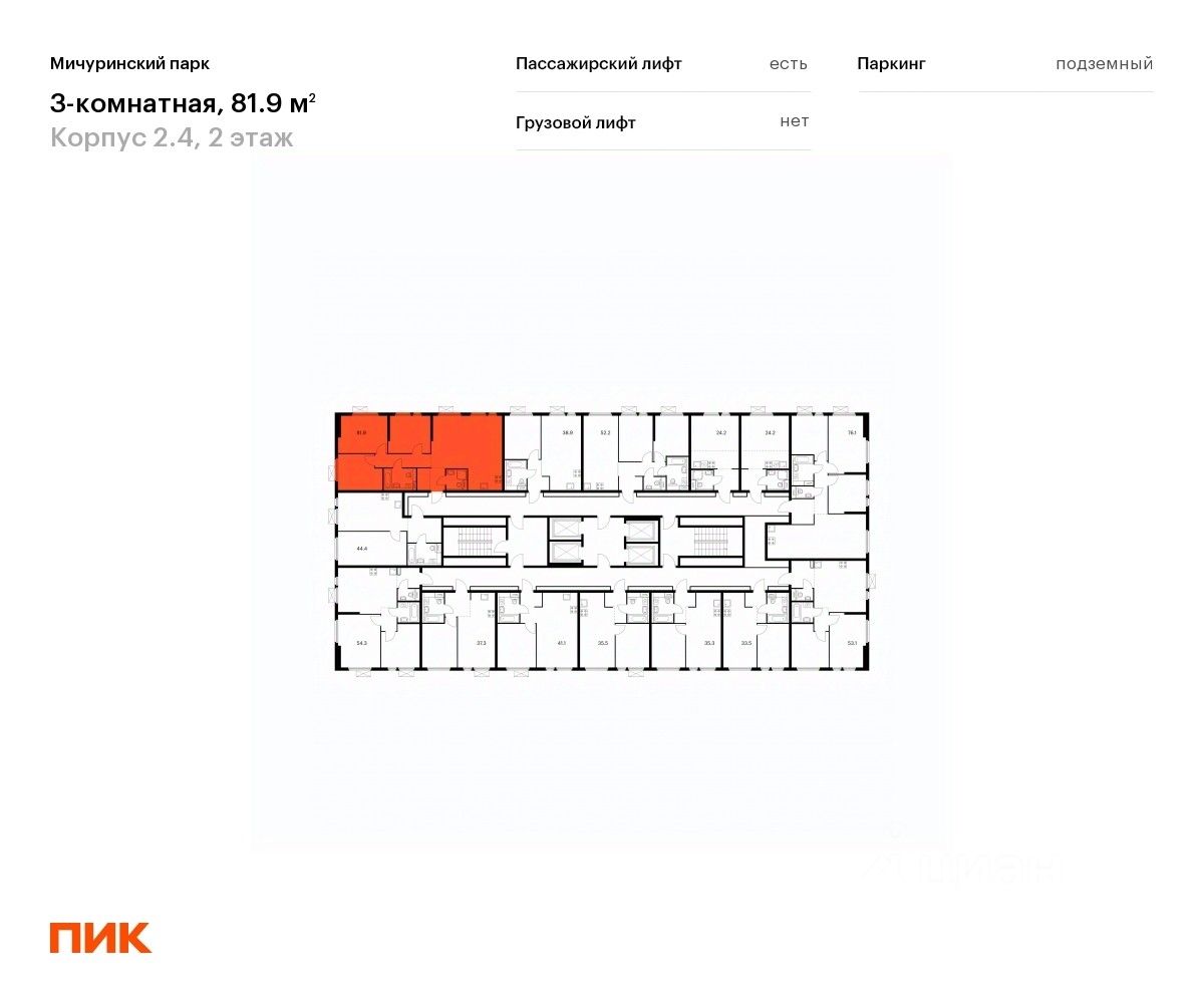 Продаётся 3-комн. квартира площадью 81,9 кв.м на 2 этаже 33 этажного дома (Корпус 2.4, Секция 1) проекта ПИК Мичуринский парк. Светлый просторный подъезд на уровне земли, функциональная планировка, большие окна, предчистовая отделка.