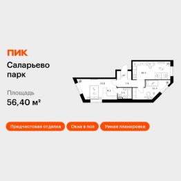 Продаётся 2-комн. квартира площадью 56,4 кв.м на 17 этаже 18 этажного дома (Корпус 74.4, Секция 4) проекта ПИК Саларьево парк. Светлый просторный подъезд на уровне земли, функциональная планировка, большие окна, предчистовая отделка.