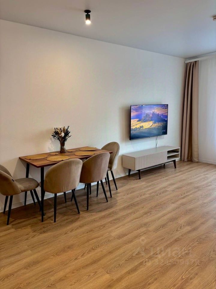 раскладной диван со спальным местом 195140см; телевизор 55 дюймов, 4К ULTRA HD QLED Frameless 144 Гц на платформе Google TV, кашемировая тумба под телевизор 15047см; обеденный стол 12070см, столешница которого выполнена из качественной полнотелой экологически чистой плиты толщиной 25 мм., соответствует классу Эмиссии E1, боковые стороны облицованы противоударной кромкой толщиной 2 мм; велюровые стулья (4 шт.);