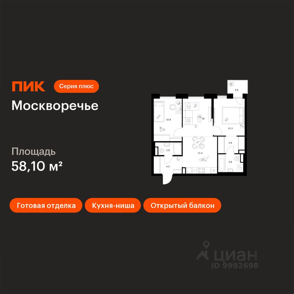 Продаётся 2-комн. квартира площадью 58,1 кв.м на 24 этаже 39 этажного дома (Корпус 1.3, Секция 4) проекта ПИК Москворечье. Светлый просторный подъезд на уровне земли, функциональная планировка, большие окна, c отделкой.