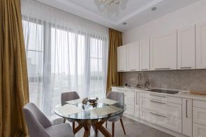 Квартира с дизайнерским ремонтом, полностью меблирована, оснащена техникой премиальных брендов. Панорамные окна в пол. Потолки 3,3 метра.