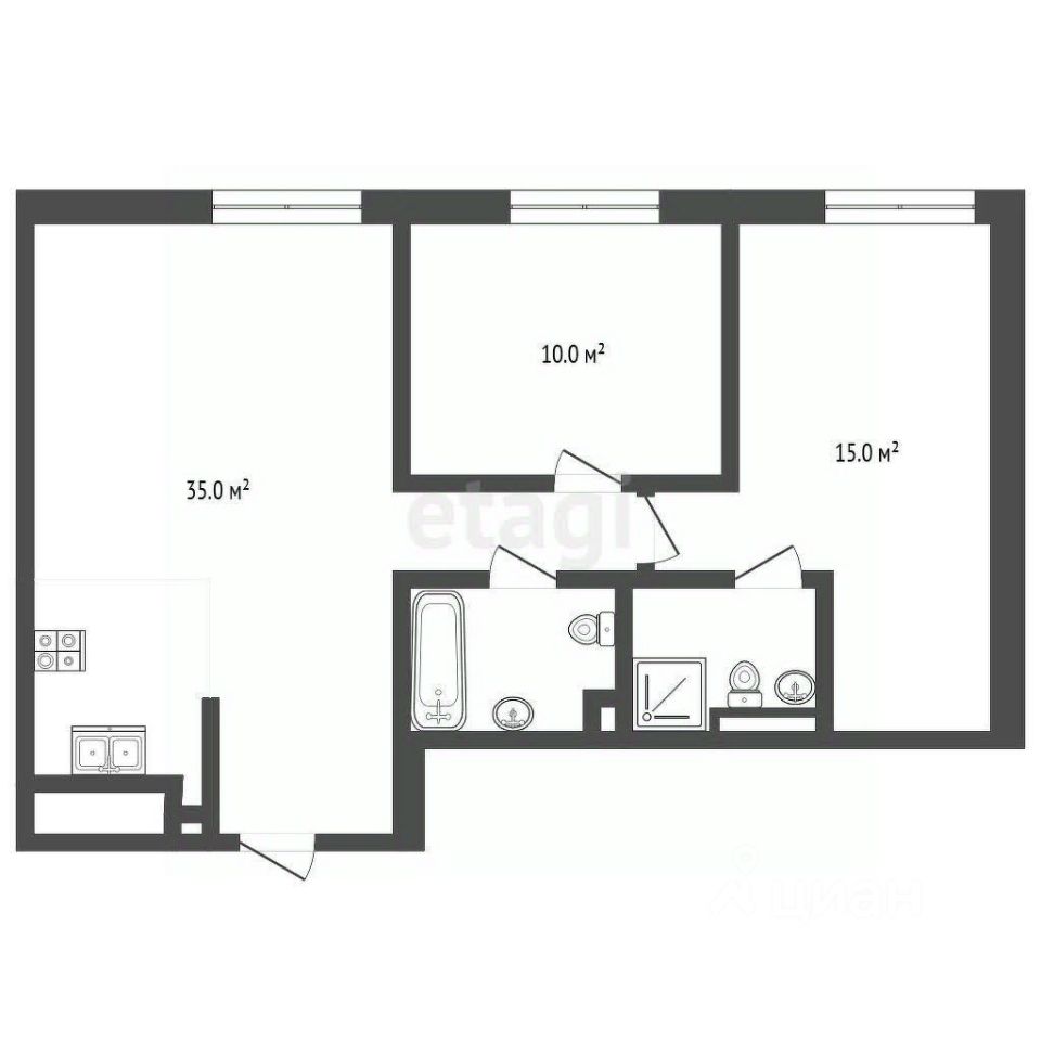 - функциональная планировка: кухня-гостиная, две изолированные комнаты одна их которых с гардеробной, санузел с ванной и санузел с душевой.