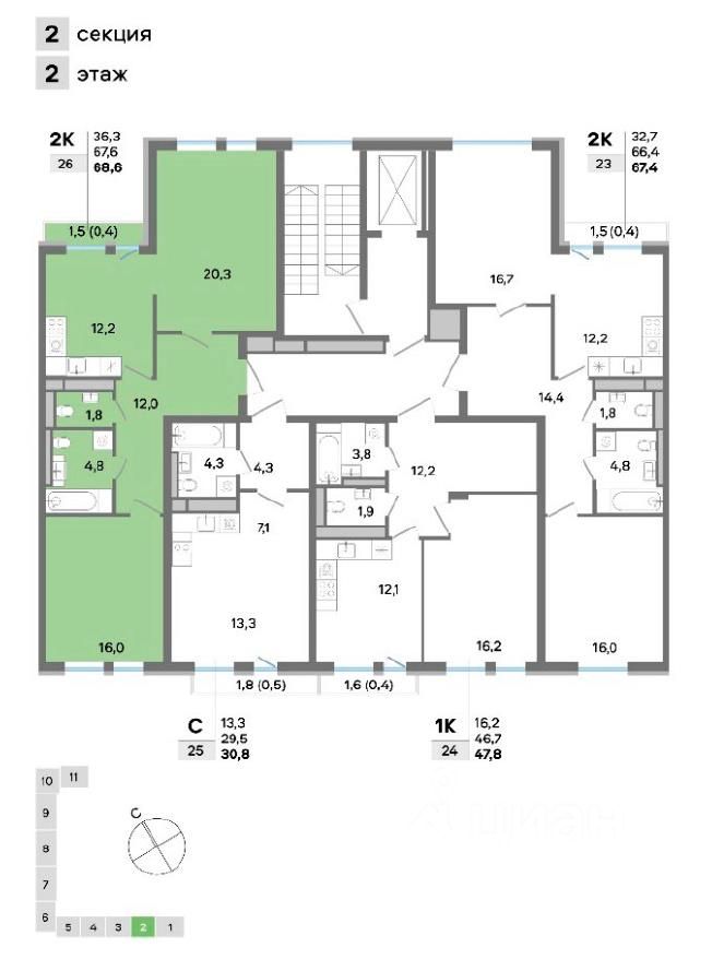 Продается в НОВОСТРОЙКЕ 2-х комнатная квартира-распашонка (на обе стороны дома) в уникальном малоэтажном бутик-квартале бизнес класса ЖК "G3 Театральный" (корпус 1, сдан в июне 2025г., ключи на руках) с дизайнерской отделкой комплекса.