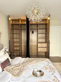 - Установлена гардеробная система и вместительные шкафы с подсветкой в каждой комнате .