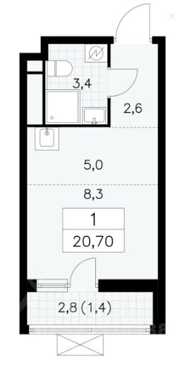 Продается отличная , видовая квартира- студия в ЖК " Прокшино", общей площадью 19,3 кв.м., квартира расположена на 14-м этаже 16-ти этажного современного монолитно-кирпичного дома .