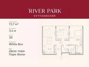 Продается 2-к квартира площадью 72.7 кв.м. на 39-м этаже в жилом комплексе премиум-класса River Park Кутузовский в Башне Emerald Tower