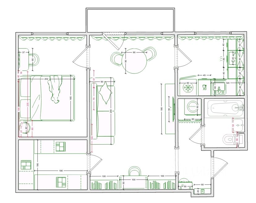Все эргономично и функционально: комфортная мебель и вся необходимая для жизни техника. Большая гардеробная комната.