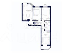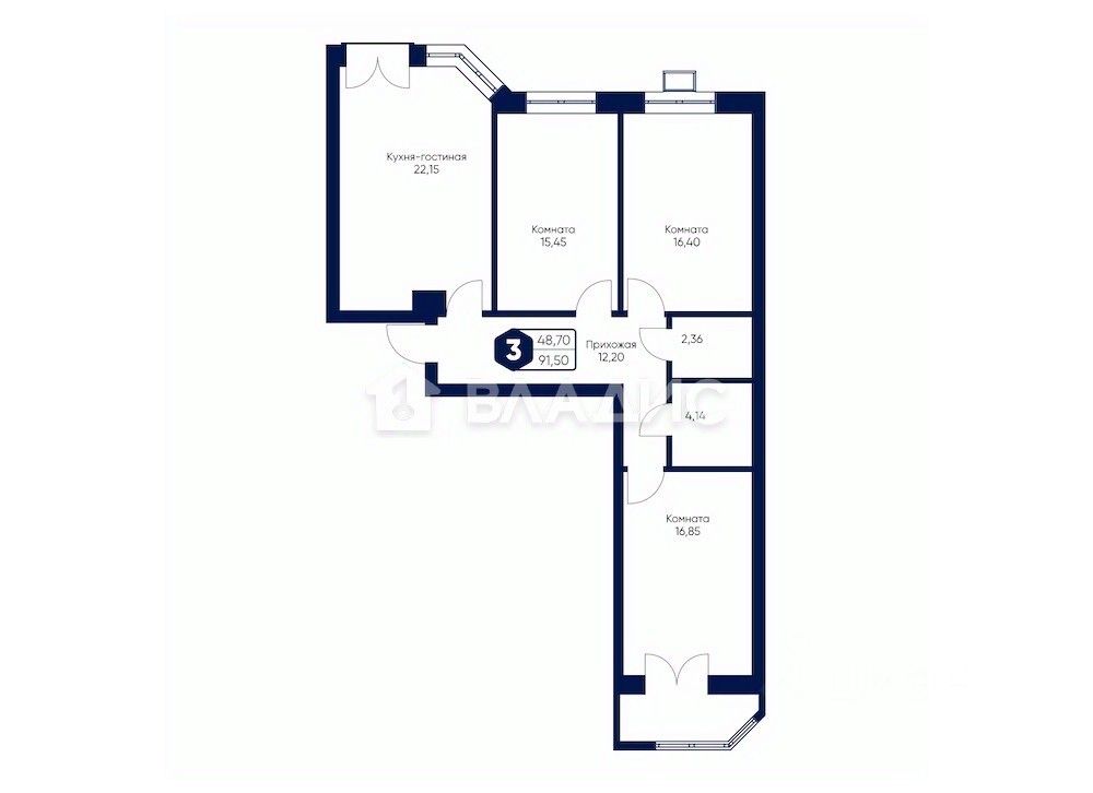 Жилая площадь = 48,70 м2 = 16,85+15,45+16,40