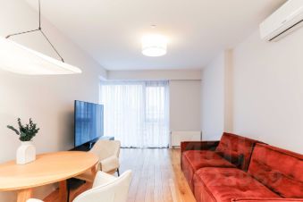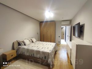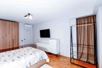 Кухня-гостиная с панорамными окнами 25,3 кв.м, спальня просторная 20.8 кв.м, сан.узел совмещенный с душевой кабиной 5 кв.м.