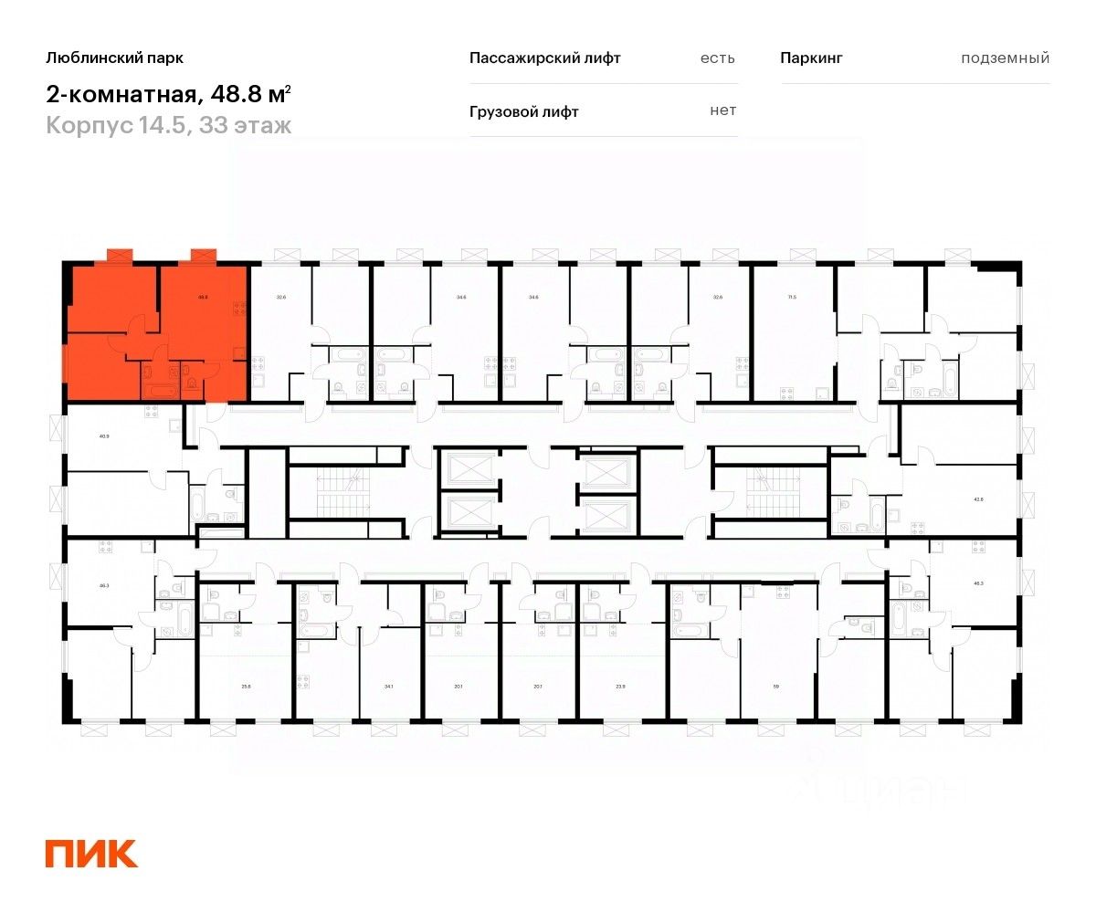 Продаётся 2-комн. квартира площадью 48,8 кв.м на 33 этаже 33 этажного дома (Корпус 14.5, Секция 3) проекта ПИК Люблинский парк. Светлый просторный подъезд на уровне земли, функциональная планировка, большие окна, c отделкой.