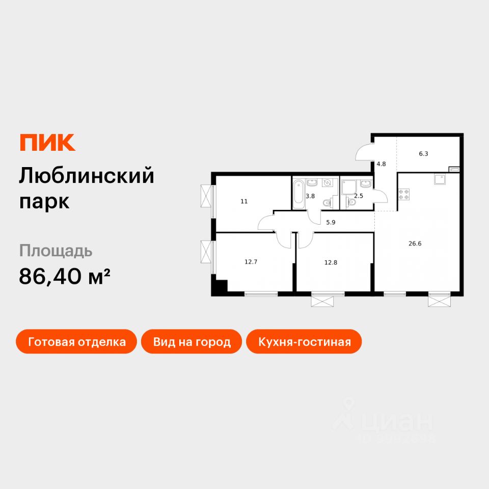 Продаётся 3-комн. квартира площадью 86,4 кв.м на 2 этаже 17 этажного дома (Корпус 14.2, Секция 2) проекта ПИК Люблинский парк. Светлый просторный подъезд на уровне земли, функциональная планировка, большие окна, c отделкой.
