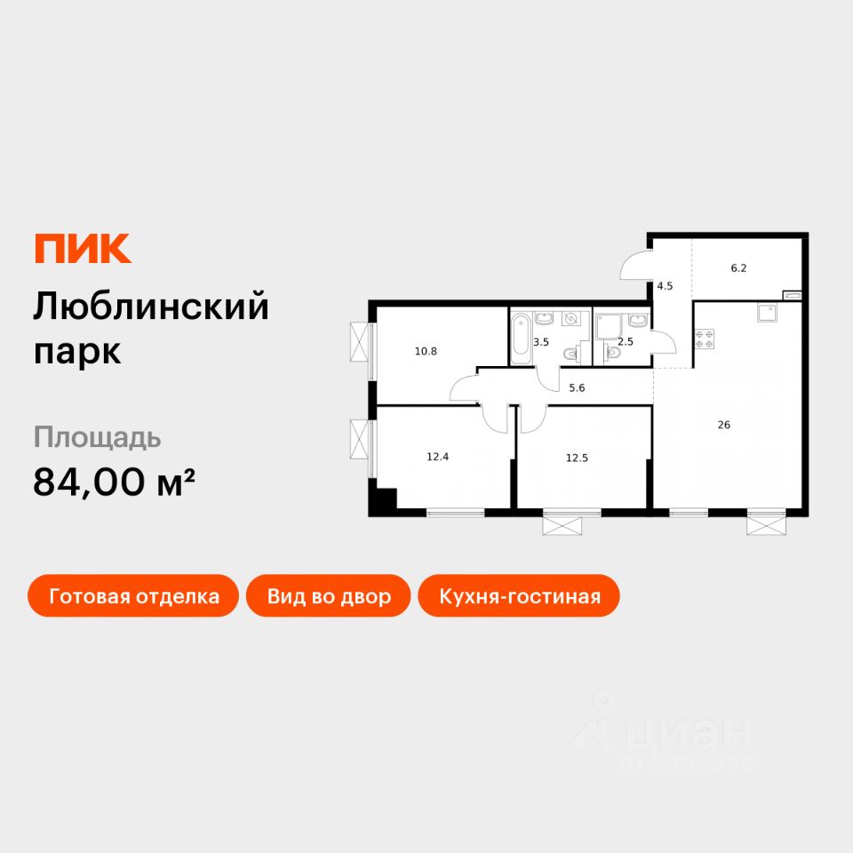 Продаётся 3-комн. квартира площадью 84 кв.м на 2 этаже 17 этажного дома (Корпус 14.2, Секция 2) проекта ПИК Люблинский парк. Светлый просторный подъезд на уровне земли, функциональная планировка, большие окна, c отделкой.