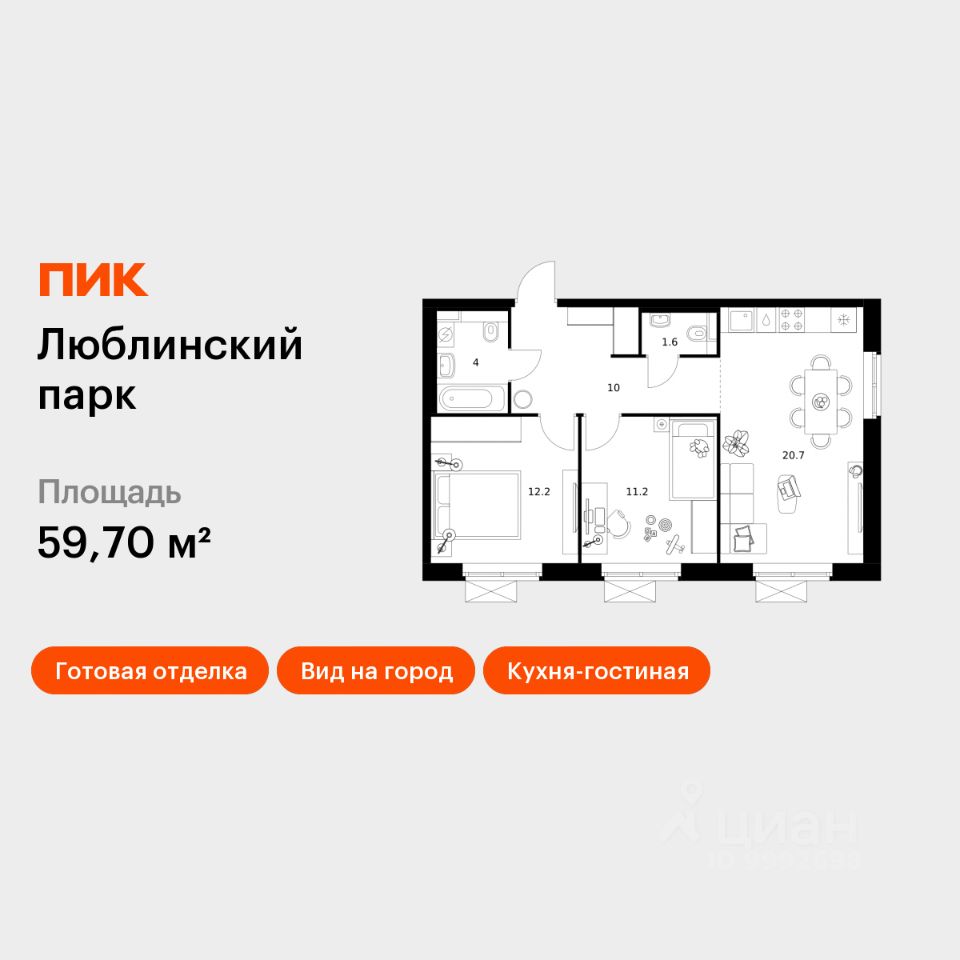 Продаётся 2-комн. квартира площадью 59,7 кв.м на 7 этаже 25 этажного дома (Корпус 19, Секция 1) проекта ПИК Люблинский парк. Светлый просторный подъезд на уровне земли, функциональная планировка, большие окна, c отделкой.