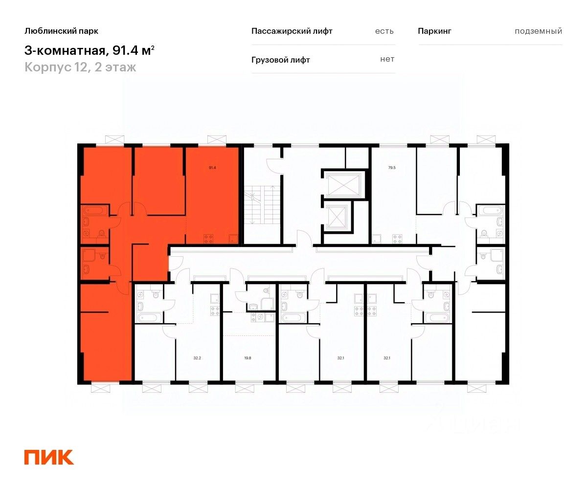 Продаётся 3-комн. квартира площадью 91,4 кв.м на 2 этаже 16 этажного дома (Корпус 12, Секция 4) проекта ПИК Люблинский парк. Светлый просторный подъезд на уровне земли, функциональная планировка, большие окна, c отделкой.