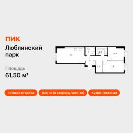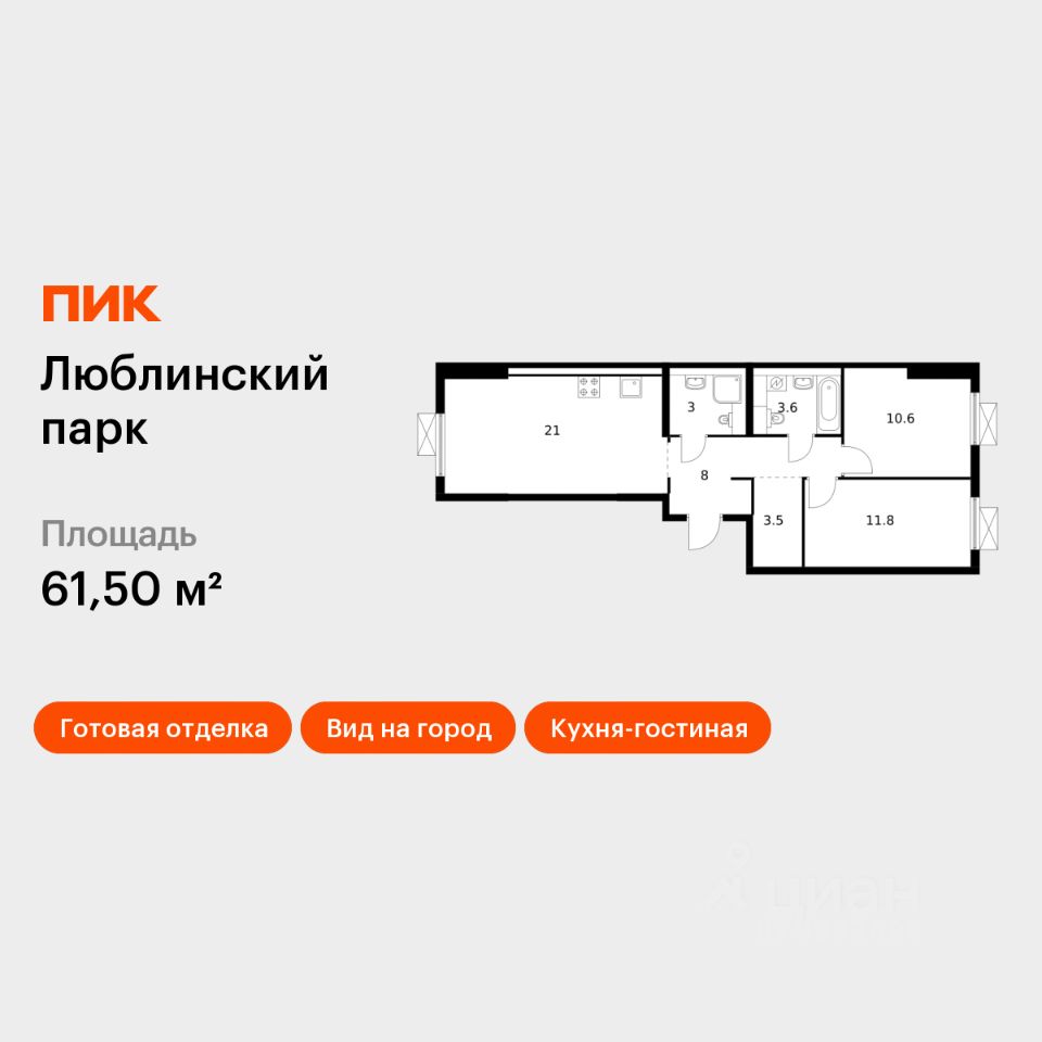 Продаётся 2-комн. квартира площадью 61,5 кв.м на 21 этаже 25 этажного дома (Корпус 12, Секция 1) проекта ПИК Люблинский парк. Светлый просторный подъезд на уровне земли, функциональная планировка, большие окна, c отделкой.