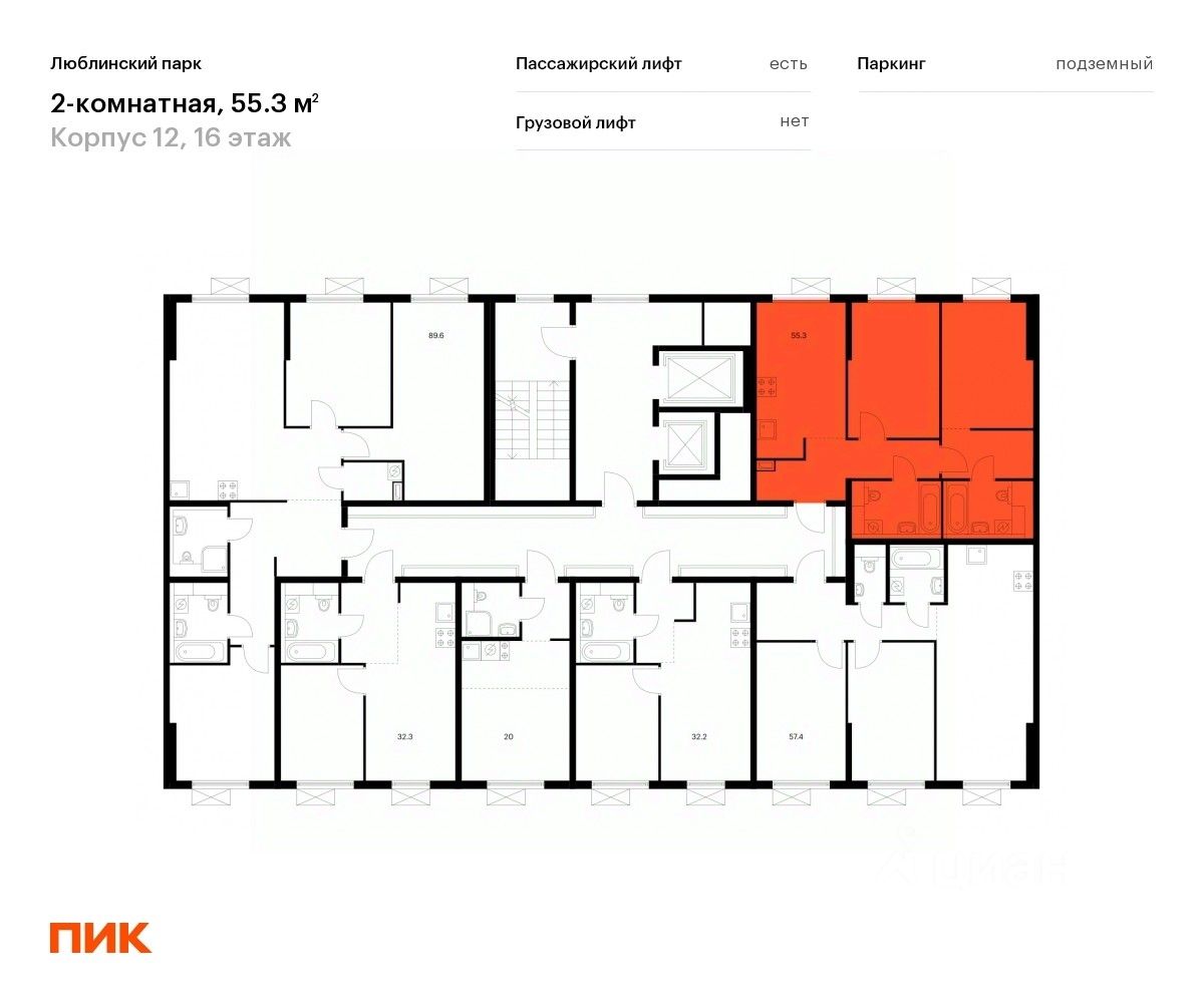 Продаётся 2-комн. квартира площадью 55,3 кв.м на 16 этаже 16 этажного дома (Корпус 12, Секция 6) проекта ПИК Люблинский парк. Светлый просторный подъезд на уровне земли, функциональная планировка, большие окна, c отделкой.