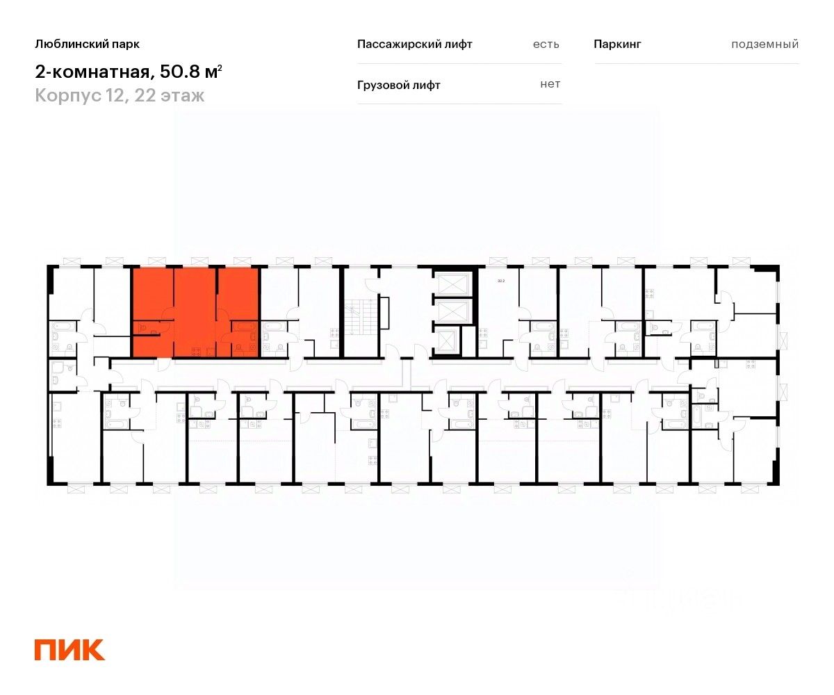 Продаётся 2-комн. квартира площадью 50,8 кв.м на 22 этаже 25 этажного дома (Корпус 12, Секция 1) проекта ПИК Люблинский парк. Светлый просторный подъезд на уровне земли, функциональная планировка, большие окна, c отделкой.