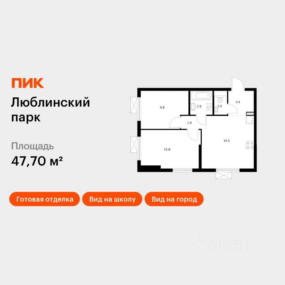 Продаётся 2-комн. квартира площадью 47,7 кв.м на 24 этаже 25 этажного дома (Корпус 12, Секция 1) проекта ПИК Люблинский парк. Светлый просторный подъезд на уровне земли, функциональная планировка, большие окна, c отделкой.